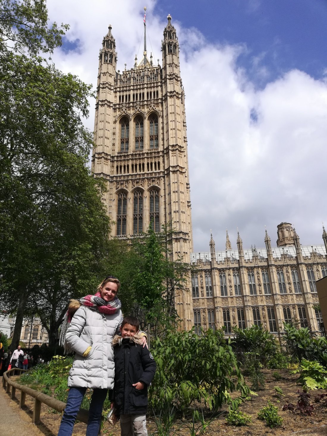 On a donc garé la voiture au parking de Westminster, puis commencé la visite , nous voici devant le parlement . Et devant les typiques cabines anglaises …
