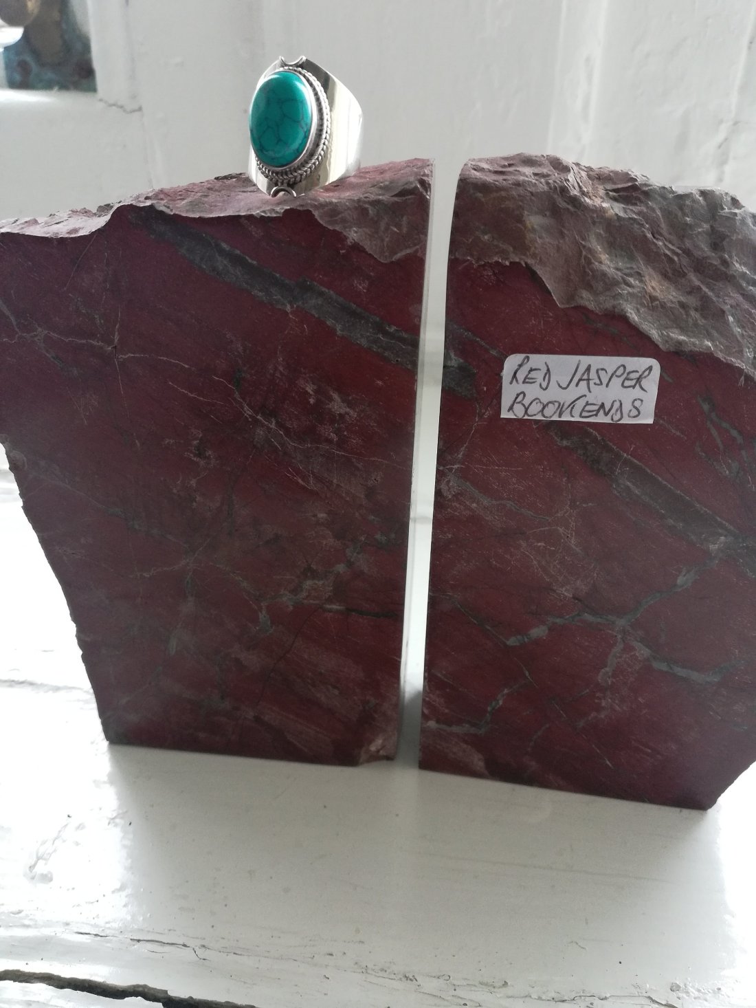 On s’est fait plaisir… Avec un carborundum, une carbonite 😉 et deux blocs de jaspe rouge brut défiant toutes concurrence et anthony s’est offert une jolie bague en turquoise …