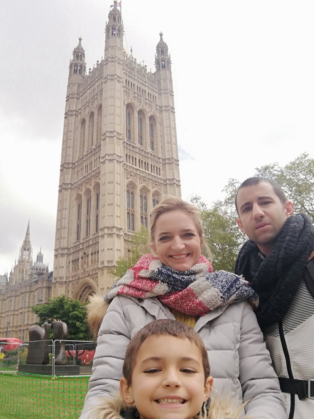 On a donc garé la voiture au parking de Westminster, puis commencé la visite , nous voici devant le parlement . Et devant les typiques cabines anglaises …
