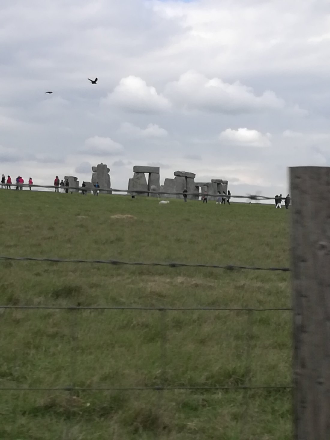 Ensuite on a décidé de repartir prendre le Schuttle , le temps maussade commence à nous peser … On veut du soleil !! ☀️C’est parti pour 5h30 de route ! En passant on s’aperçoit que sur notre gauche sont érigés les menhirs de stonhege … Et oui ce sont eux … Super , en plus on a pu les voir … Franchement , ça valait pas le coup de s’arrêter , c’est vraiment tout petit , juste un beau panneau annonce leur présence !